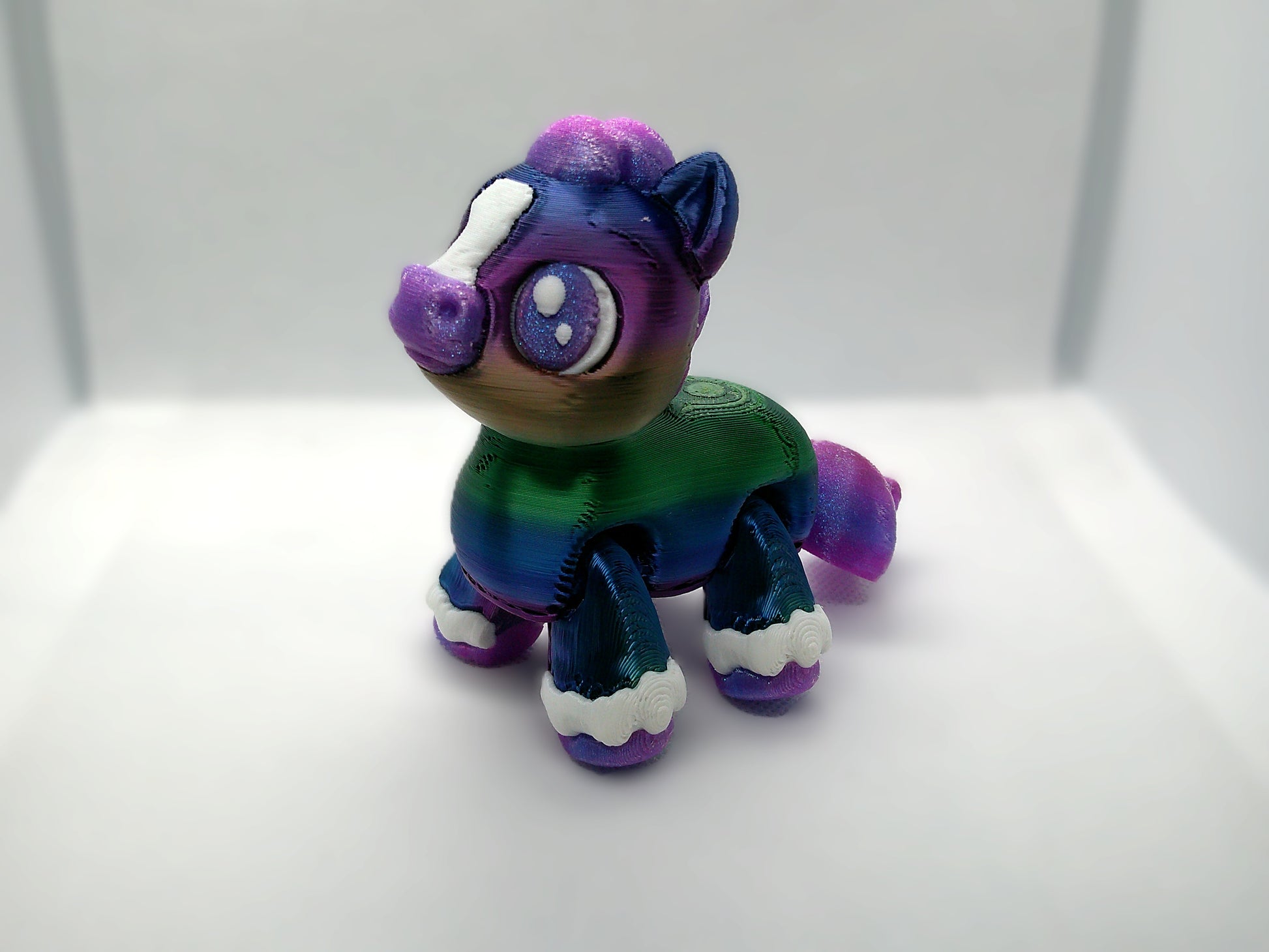 This charming blue and purple gradient horse flaunts a dazzling purple glitter mane and crisp white accents for a fun, vibrant look. Its flexible body lets imagination run wild, making it perfect for playful adventures and creative storytelling.
