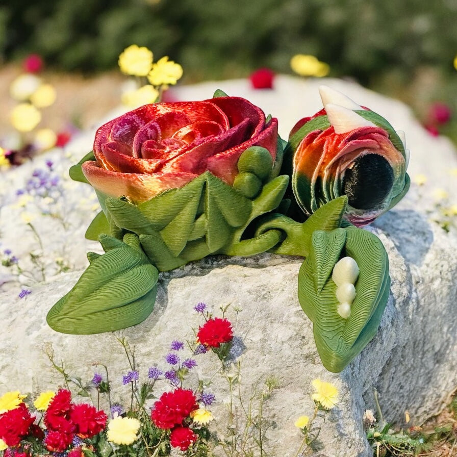 Discover the perfect blend of elegance and fantasy with this stunning 3D‑printed rose dragon, designed to look like a blooming red rose entwined with magical dragon features. Its shimmering petals, leafy green body, and delicate dragon horns make it a truly unique collectible.