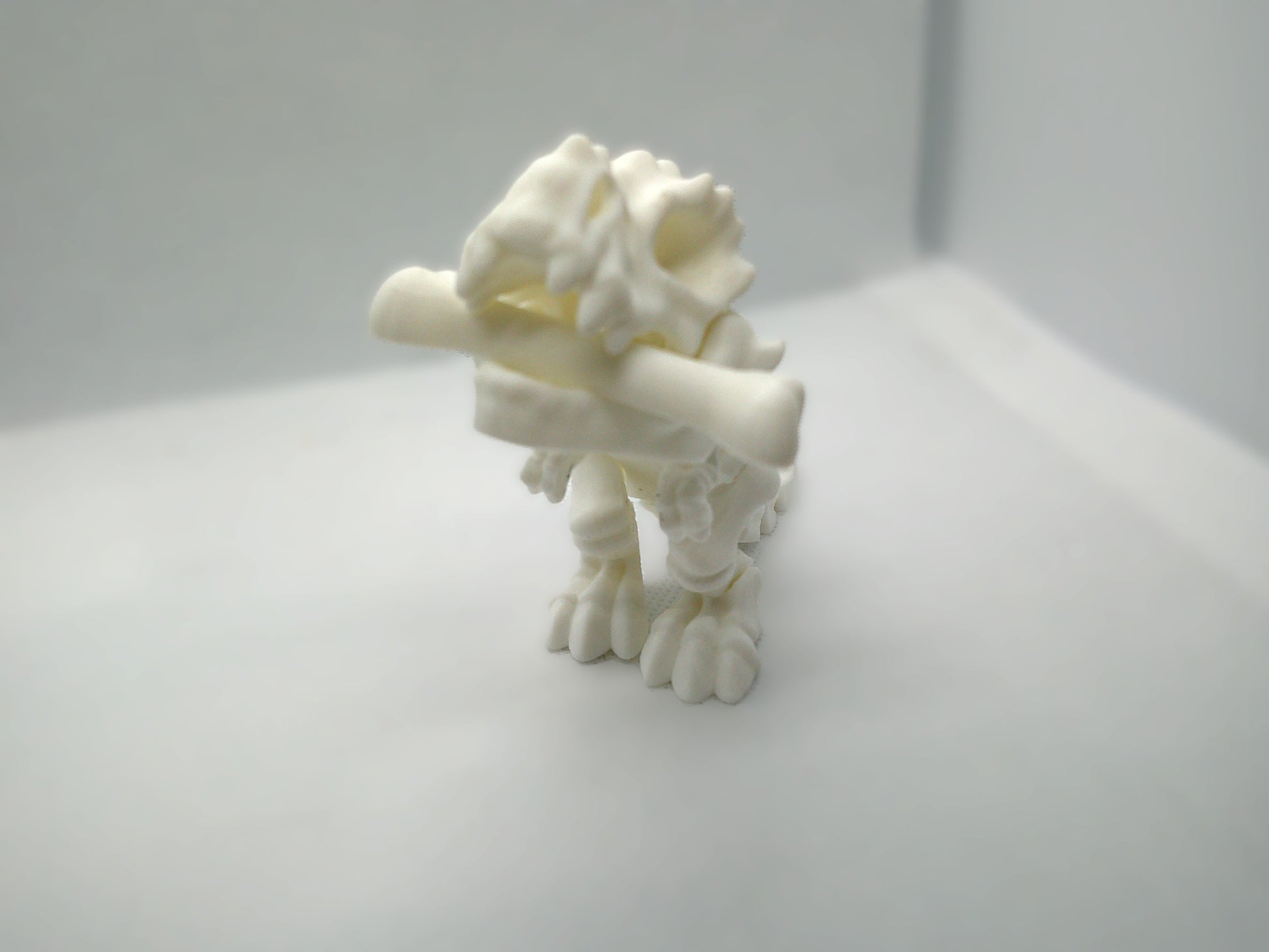 Roaarrr this skeleton T Rex has a clamping jaw so you can have it clamp on it's bone or even your finger! He can stand up on his back legs or lay flat on it's belly! The length of this figurine is approximately 4" long and is sure to make a great gift for any dinosaur lover!
