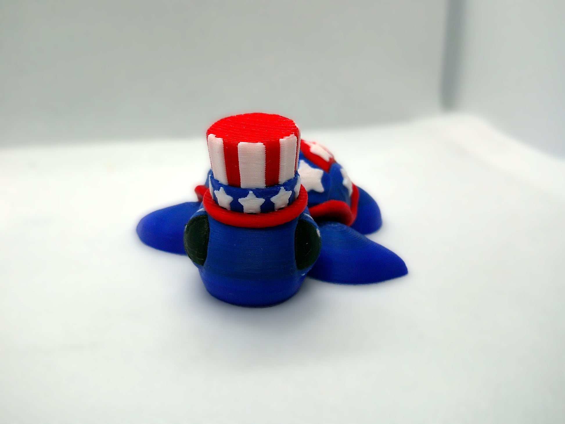 Celebrate American spirit with this playful articulated turtle! Its lively, jointed design brings fun movement to your decor or collection, while the bold patriotic colors showcase your pride in a unique, charming way. Perfect for adding a touch of whimsy and national pride to any space. Approximately 3" long